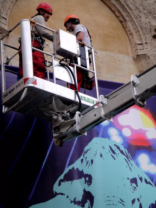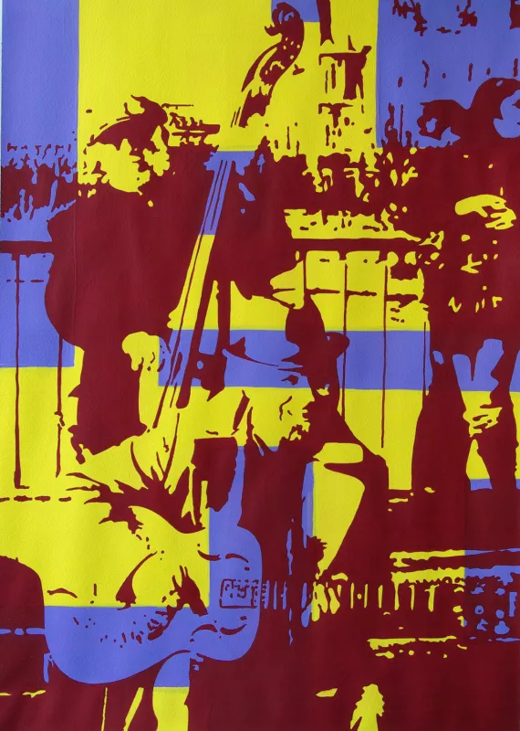 Il ne s’agit pas d’une série mais de diverses parenthèses. Ma participation à la Nuit Blanche avec une bâche de 6 x 4 mètres qui évoquait le temps et le vivant, deux grands triptyques qui pourraient se refermer comme des retables, des musiciens de rue rencontrés par hasard…