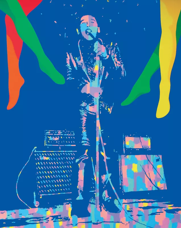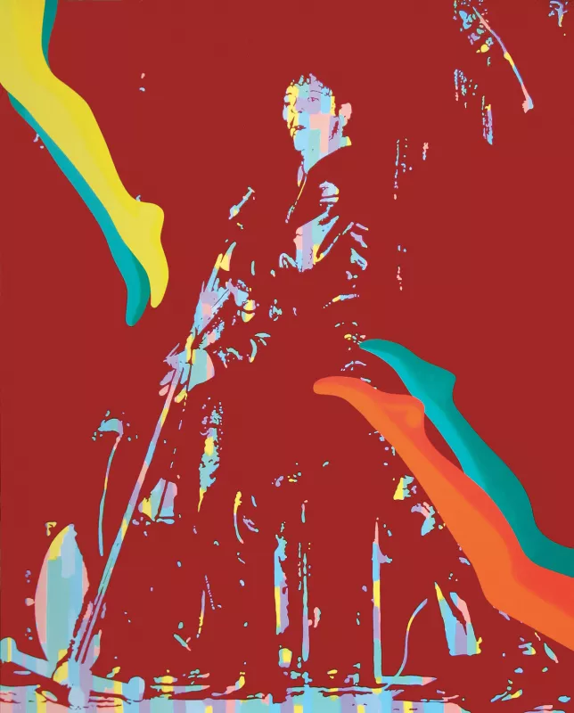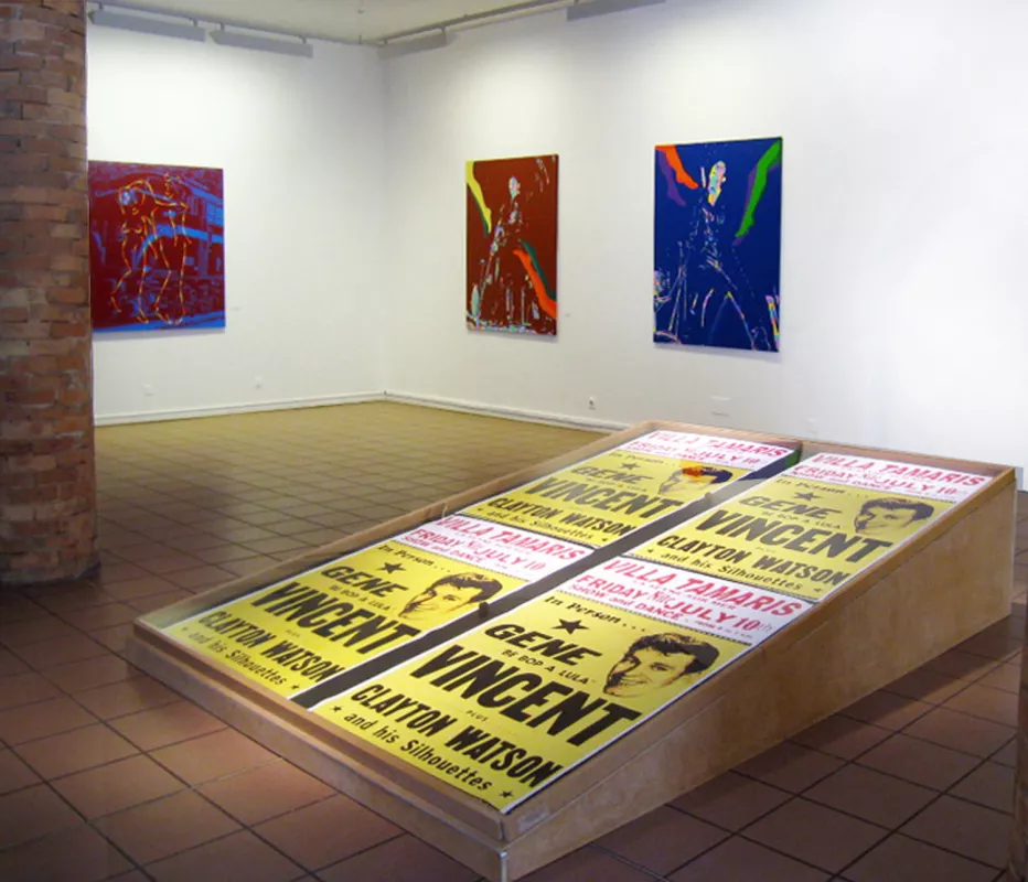 Gene Vincent, Monsieur Be-Bop-A-Lula, l’image du rocker mais avant tout l’homme blessé, l’homme à la jambe accidentée qui chantait Crazy Legs « …She can boogie, she can move and jump… » Le pied estropié et cette chanson à propos des jambes d’une fille ont été les déclencheurs de cette série de tableaux.