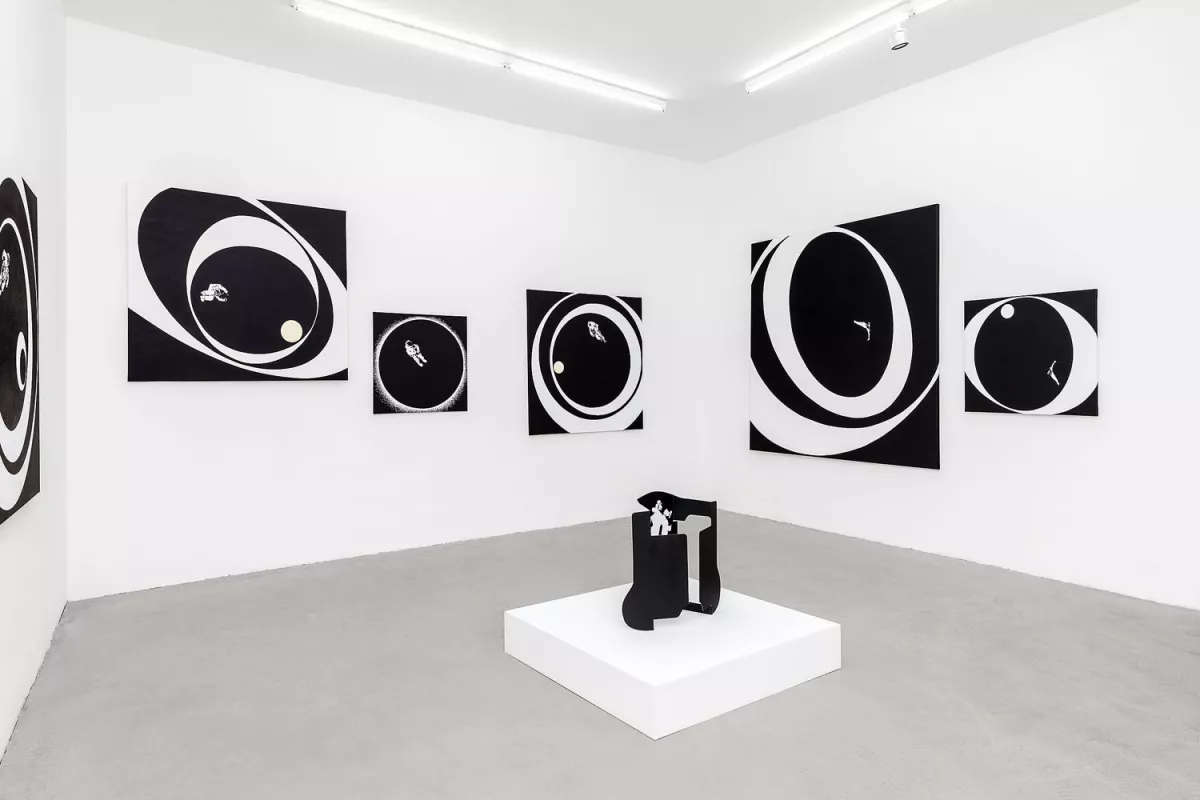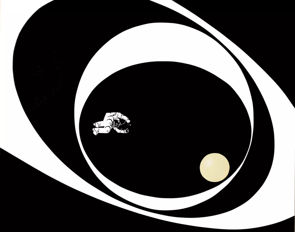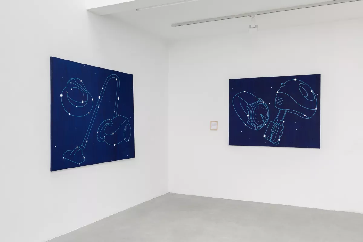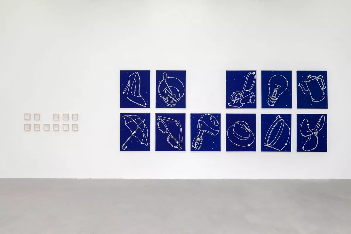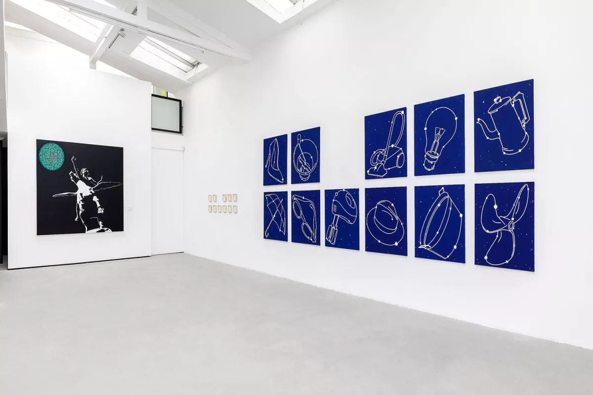 Au terme d’une longue réflexion, souhaitant s’épargner le spectacle de la fatale agonie, D. décide de s’exiler, loin, très loin, à des milliards d’années-lumière. Il part sur le champ vers l’autre bout de son domaine. Dans sa hâte d’échapper aux supplications stériles —qu’y pouvait-IL — IL était parti les mains dans les poches sans même emporter une photo des belles années de la terre à mettre dans un cadre. À peine arrivé, IL se rend compte que tout LUI manque. IL n’a pas quoi se faire le café dont IL aurait bien besoin ! Ni une ni deux, IL sème quelques étoiles dans l’étendue désertique. Elles se dispersent dans un premier temps puis constituent des amas et dessinent dans les cieux des constellations. Ici le Chapeau tendu, là la Cafetière énergétique, plus loin l’Aspirateur des idées inconsistantes, et là encore le Parapluie ouvert par erreur, les Lunettes sans foyer, l’Hélice à moiteur, le Moulin vert, l’Ampoule de lumière amniotique et enfin l’Escarpin d’Achille…