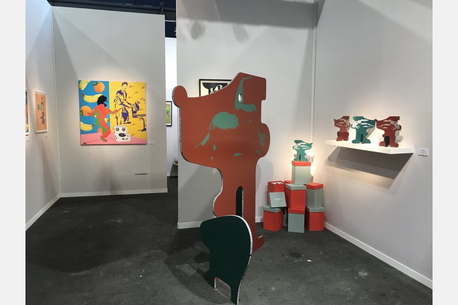 Je viens de présenter avec succès un solo sur le stand de la ATB Gallery de Lille dans le cadre de Art-Paris Art-Fair. La scènographie nous a permis de montrer deux aspects de mon œuvre. Une série de "dessins" fais sur mon iPad puis imprimés en exemplaires uniques dans lesquels j'incarne le personnage du peintre, qu'il soit homme ou femme. On le (les) voit au travail, inspirés par leurs modèles. Un autre espace accueillait une sculpture en aluminium, réalisée en 2012 ainsi qu'une version beaucoup plus petite, éditée à 20 exemplaires. La première s'intitule "Snoopy dans les Tuileries" et la seconde "Snoopy dans les Buissons". Toutes deux font référence à l'œuvre de Maillol "la Rivière" au pied de laquelle j'ai vu un jour un petit chien uriner.