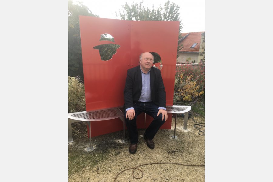 À Naintré commune du grand Chatellerault, inauguration de ma sculpture banc à la médiathèque.