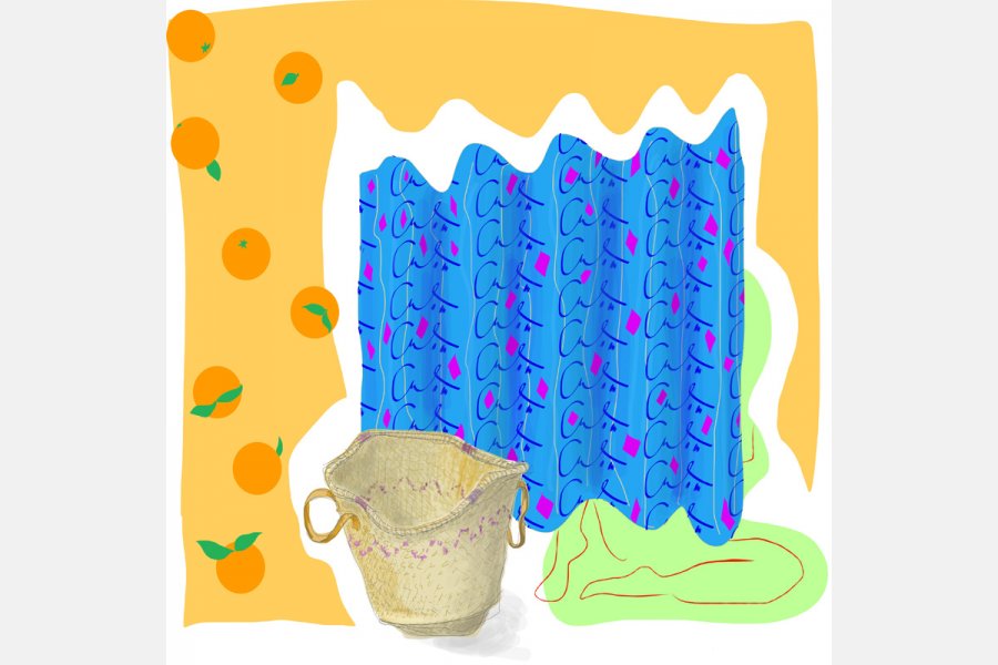 Illustration : Le panier percé, 130 x 130 cm 2016