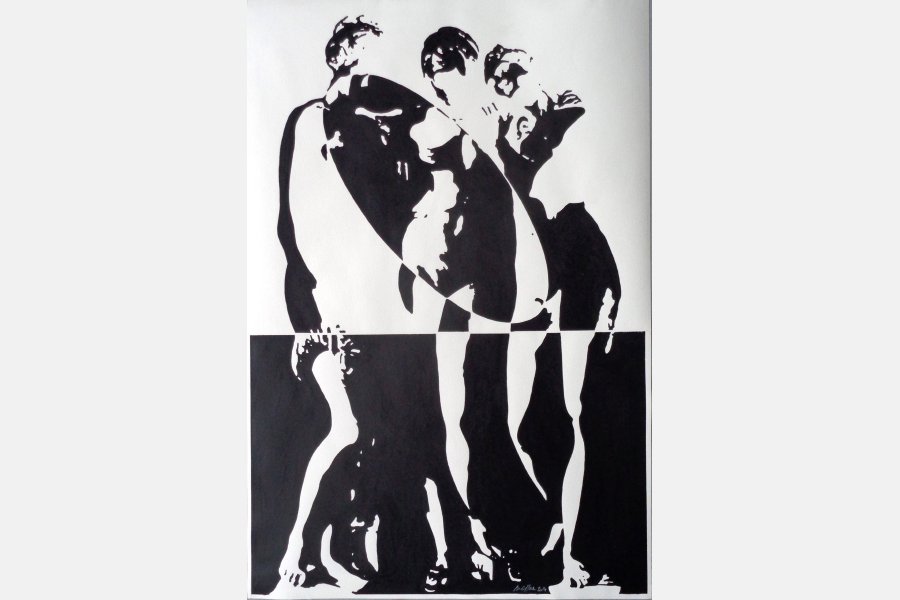 Impression Parisienne ne voulait pas en rester là et c'est une sorte de sculpture qu'elle nous propose aujourd'hui, une sculpture plane et ludique sur le thème des trois Grâces, abordé de nombreuses fois par l'artiste au cours des dernières décennies.