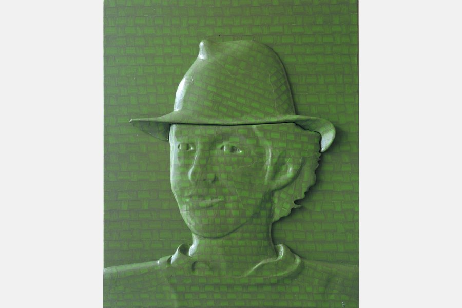 Pour mon retour à la peinture, j’ai pris appui sur l’amitié. J’ai fait des portraits d’amis taillés, à la façon de bas-reliefs, dans du polystyrène et recouverts de papiers peints par mes soins. Certes, il reste des trace du sculpteur dans ce travail.