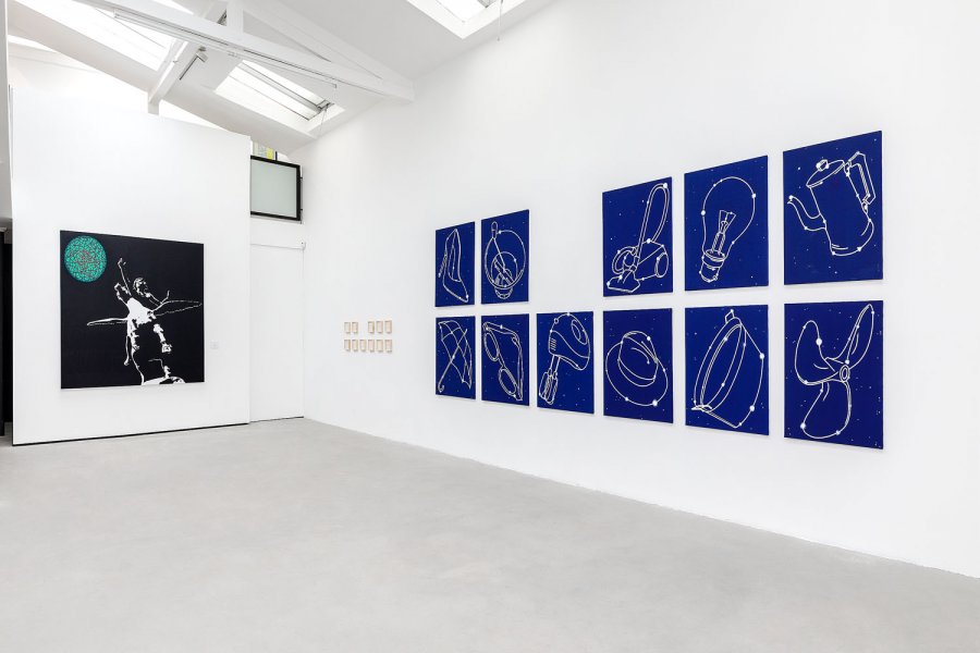 Au terme d’une longue réflexion, souhaitant s'épargner le spectacle de la fatale agonie, D. décide de s'exiler, loin, très loin, à des milliards d'années-lumière. Il part sur le champ vers l'autre bout de son domaine. Dans sa hâte d'échapper aux supplications stériles —qu'y pouvait-IL — IL était parti les mains dans les poches sans même emporter une photo des belles années de la terre à mettre dans un cadre. À peine arrivé, IL se rend compte que tout LUI manque. IL n’a pas quoi se faire le café dont IL aurait bien besoin! Ni une ni deux, IL sème quelques étoiles dans l'étendue désertique. Elles se dispersent dans un premier temps puis constituent des amas et dessinent dans les cieux des constellations. Ici le Chapeau tendu, là la Cafetière énergétique, plus loin l'Aspirateur des idées inconsistantes, et là encore le Parapluie ouvert par erreur, les Lunettes sans foyer, l'Hélice à moiteur, le Moulin vert, l’Ampoule de lumière amniotique et enfin l'Escarpin d'Achille…